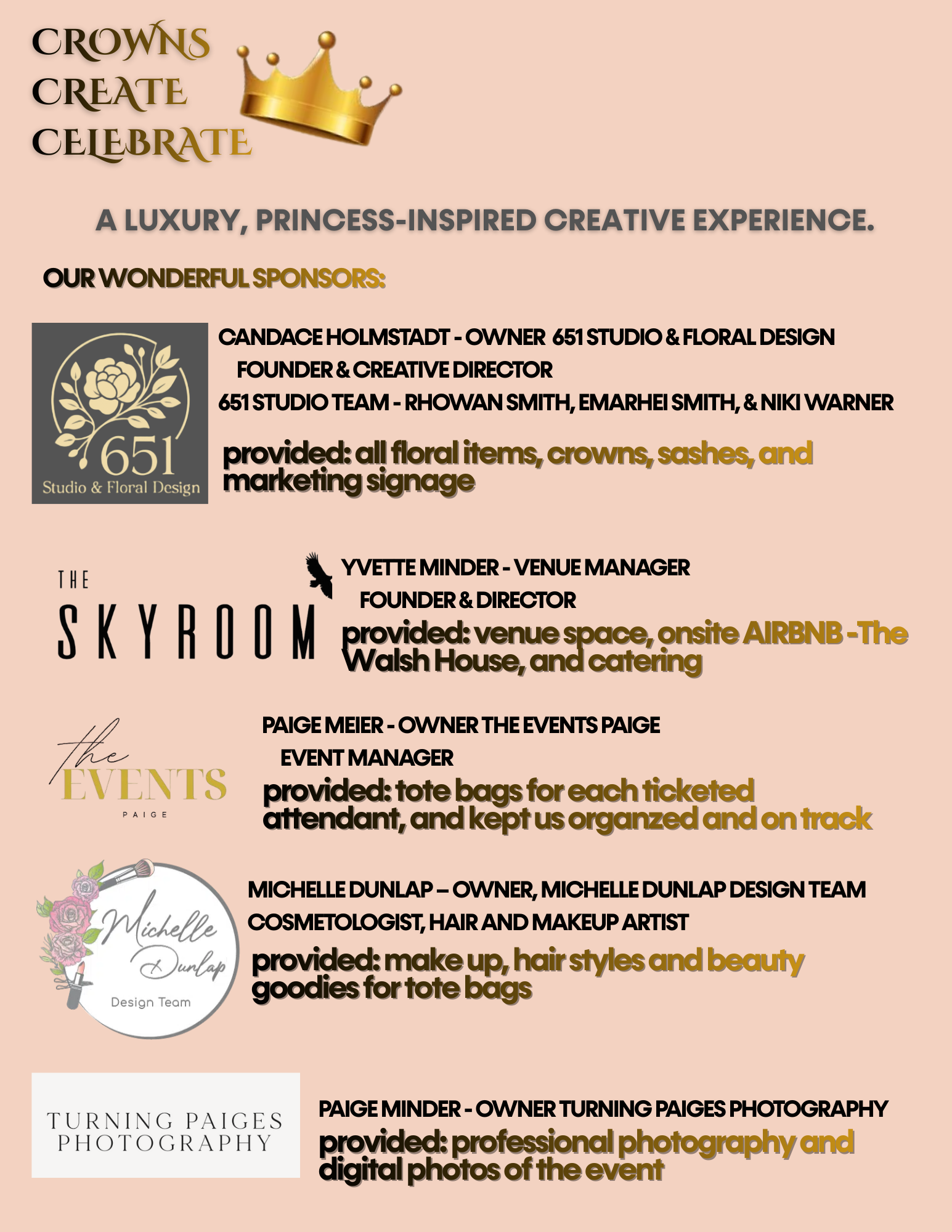 Each ticket purchased will receive light hair and makeup, create a floral crown, create a custom sash, enjoy snuggles with a therapy dog, a royal dessert, beaded jewelry, a professional, digital photo with Miss Minnesota and Miss Minnesota Teen and a tote bag to keep everything organized!!!